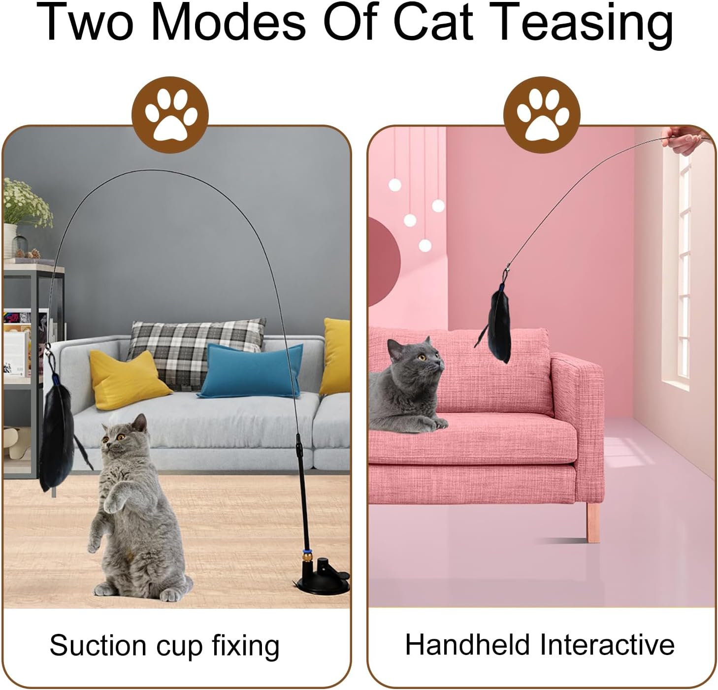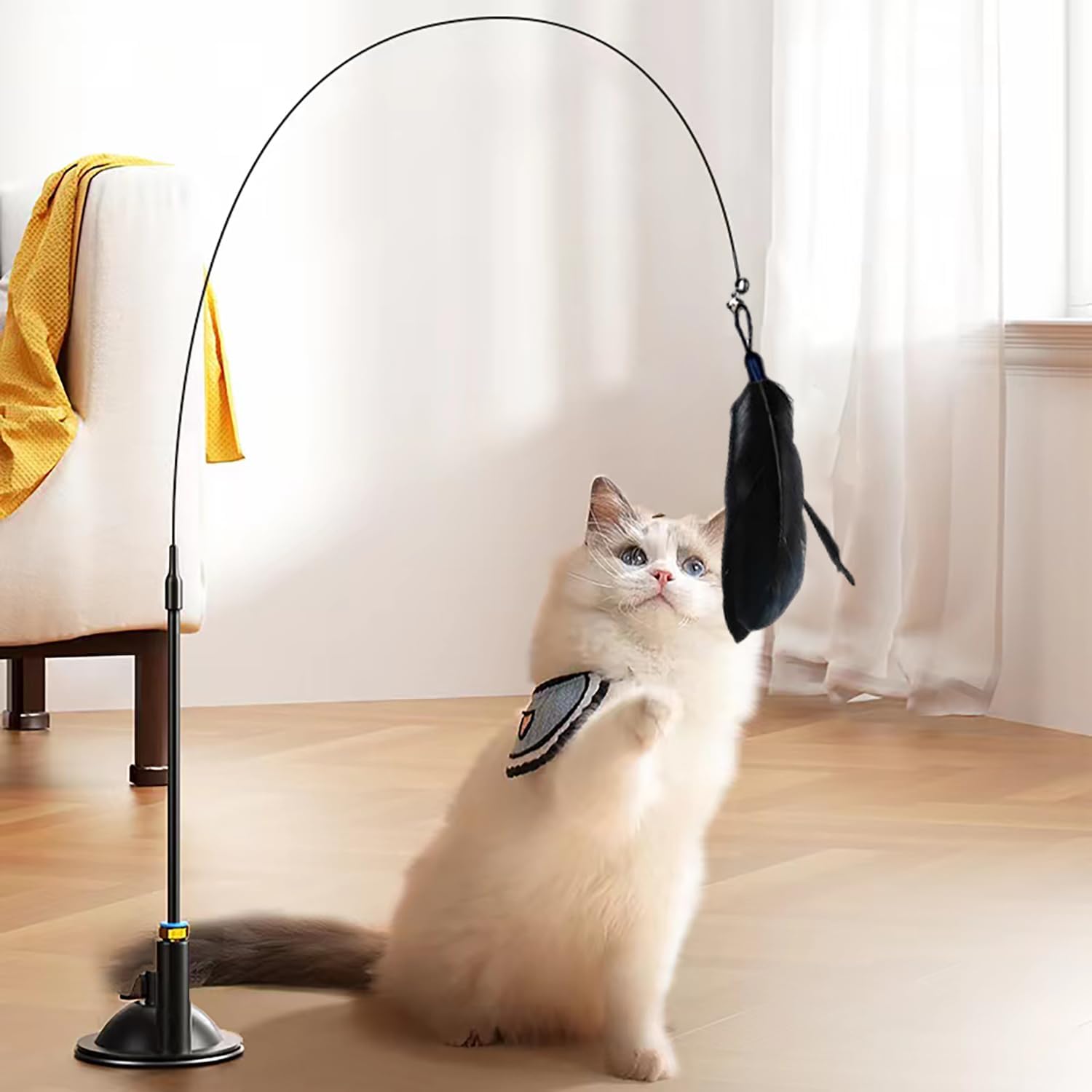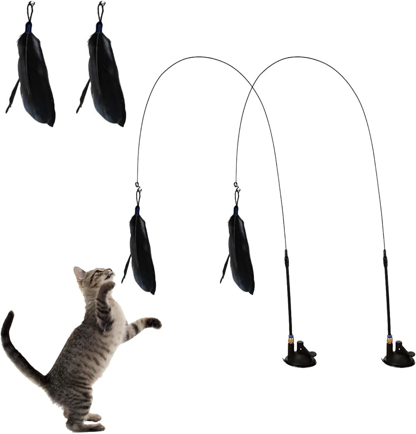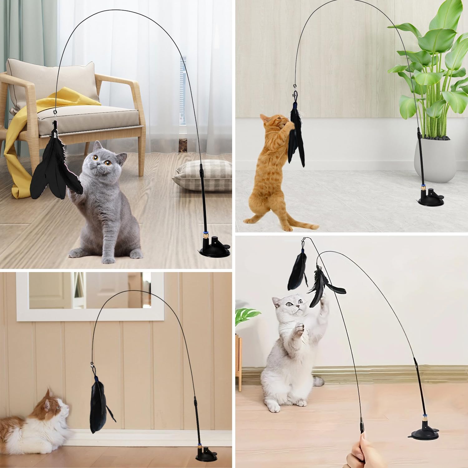 Eupneicu Katzen Spielzeug, Katzenangel Stabil Mit Saugnäpfen – Katzenspielzeug Angel Mit Federn, Natürlich Interaktives Katzenspielzeug Für Katzen, Intelligenz Spielzeug Mit Federn