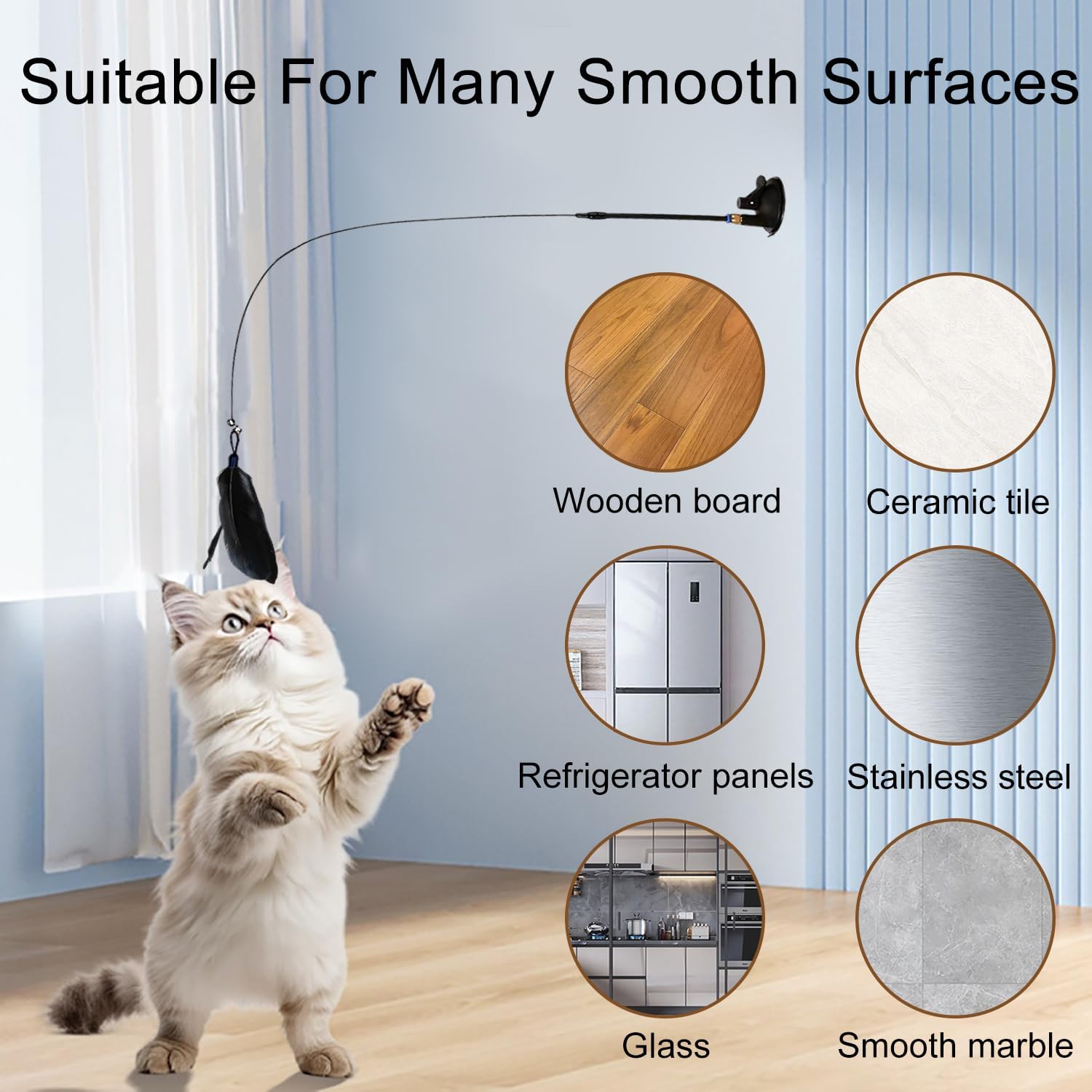 [Saugnapf-Design] – interaktives katzenspielzeug ist mit einer Saugnapfbasis mit starker Adsorptionskraft ausgestattet, die fest an glatten Böden wie Fliesen, Holzböden, Edelstahl, Marmor, Glastüren, Glasfenstern, Kühlschranktüren usw.
